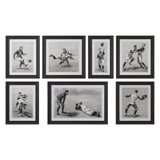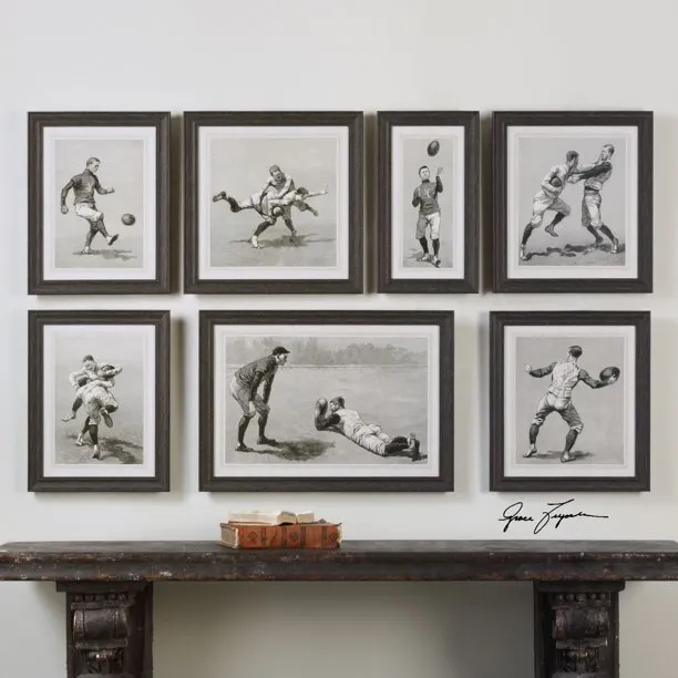 Prints Have Faux Mats And Are Accented By Rustic, Dark Black Wooden Frames With Slight Taupe Undertones. Prints Are Under Glass. Sizes: 2-15x19, 2-17x19, 1 Each-26x19, 19x19 & 11x19