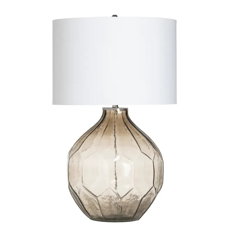 The Crestview Collection Ventana Large Scale, Faceted, Sepia Glass Lamp uses elongated polygons in combination with hexagons to give the base a structured geometric feeling while the globe itself has soft whispers of light brown. The lamp is topped with a cream colored, round lamp shade, completing the neutral tones that will blend into your transitional style home or office decor. This lamp will be a perfect addition to your living room, family room, office or bedroom side table.