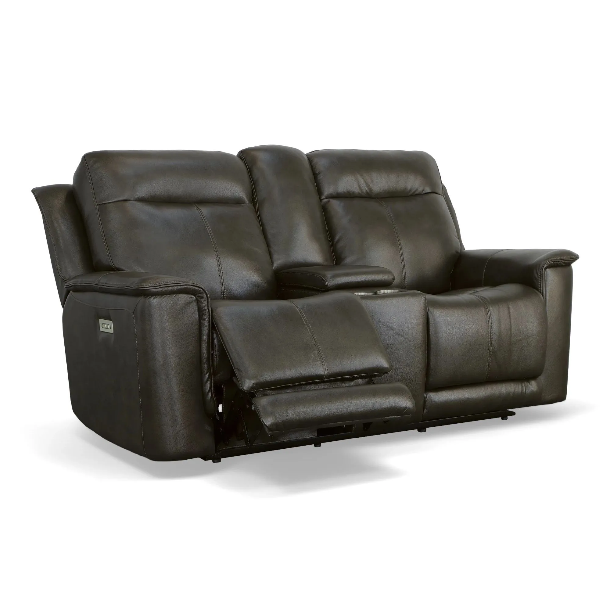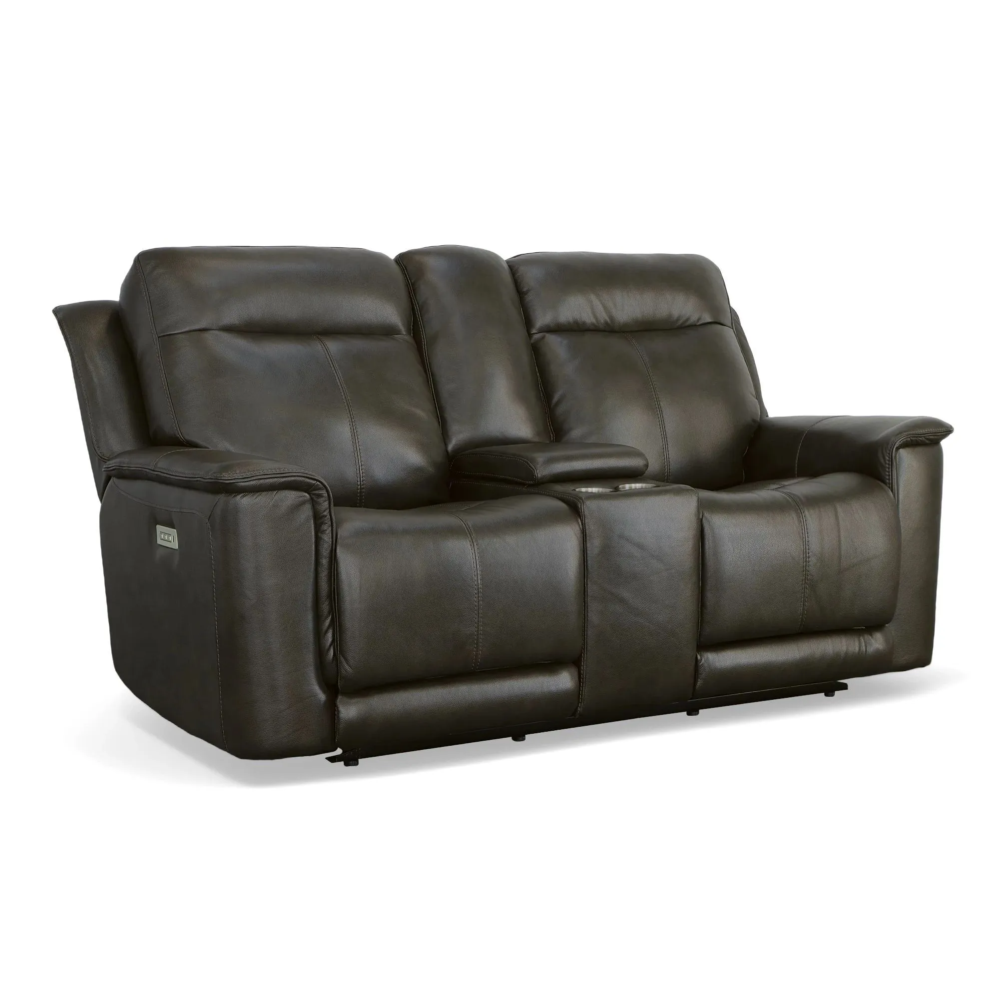 Miller Leather Power Reclining Loveseat w/ Console & Power Headrests by Flexsteel Furniture